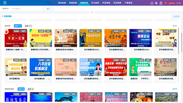打破“一个业务、一个系统、一套设备”的建设模式。实现网络视听新媒体各类业务在一个平台上融合监管、监管大数据在一个平台上汇聚共享、监管结果在一个平台上收录发布,实现了全业务、全流程、多维度的智能化、便捷化监管。