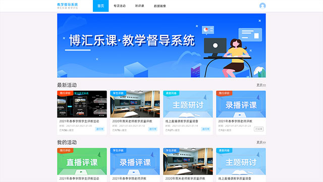 为督导员提供线上和线下均可参与的教学督导服务,为管理员提供直观的远程教学空间管理服务,为决策者提供全面的数据可视化服务。